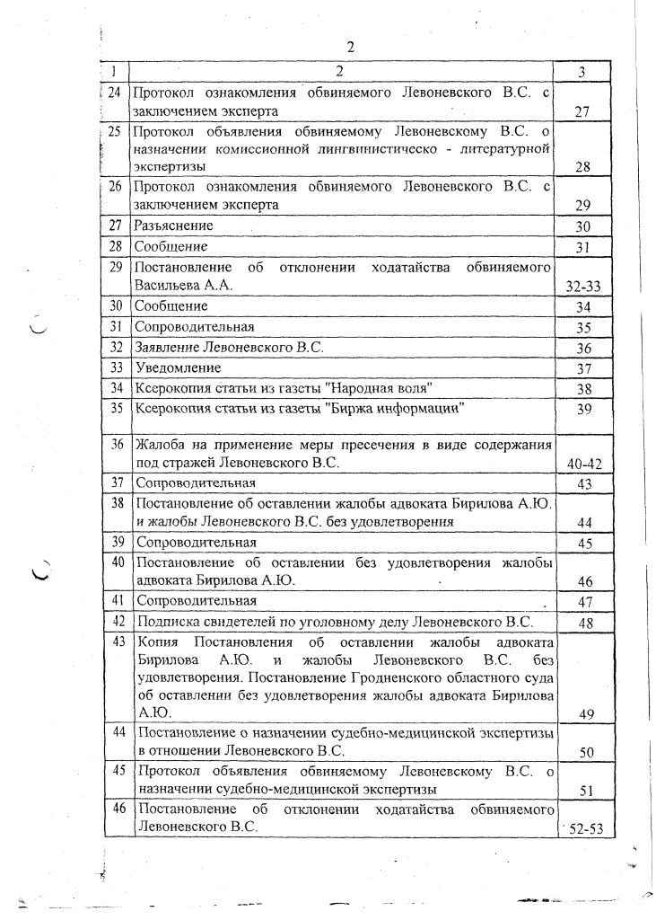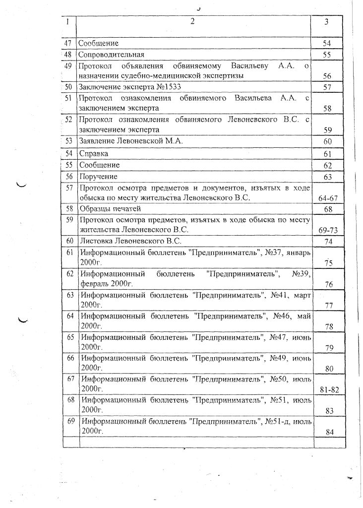 Протокол ознакомления обвиняемого Левоневского В.С. с
